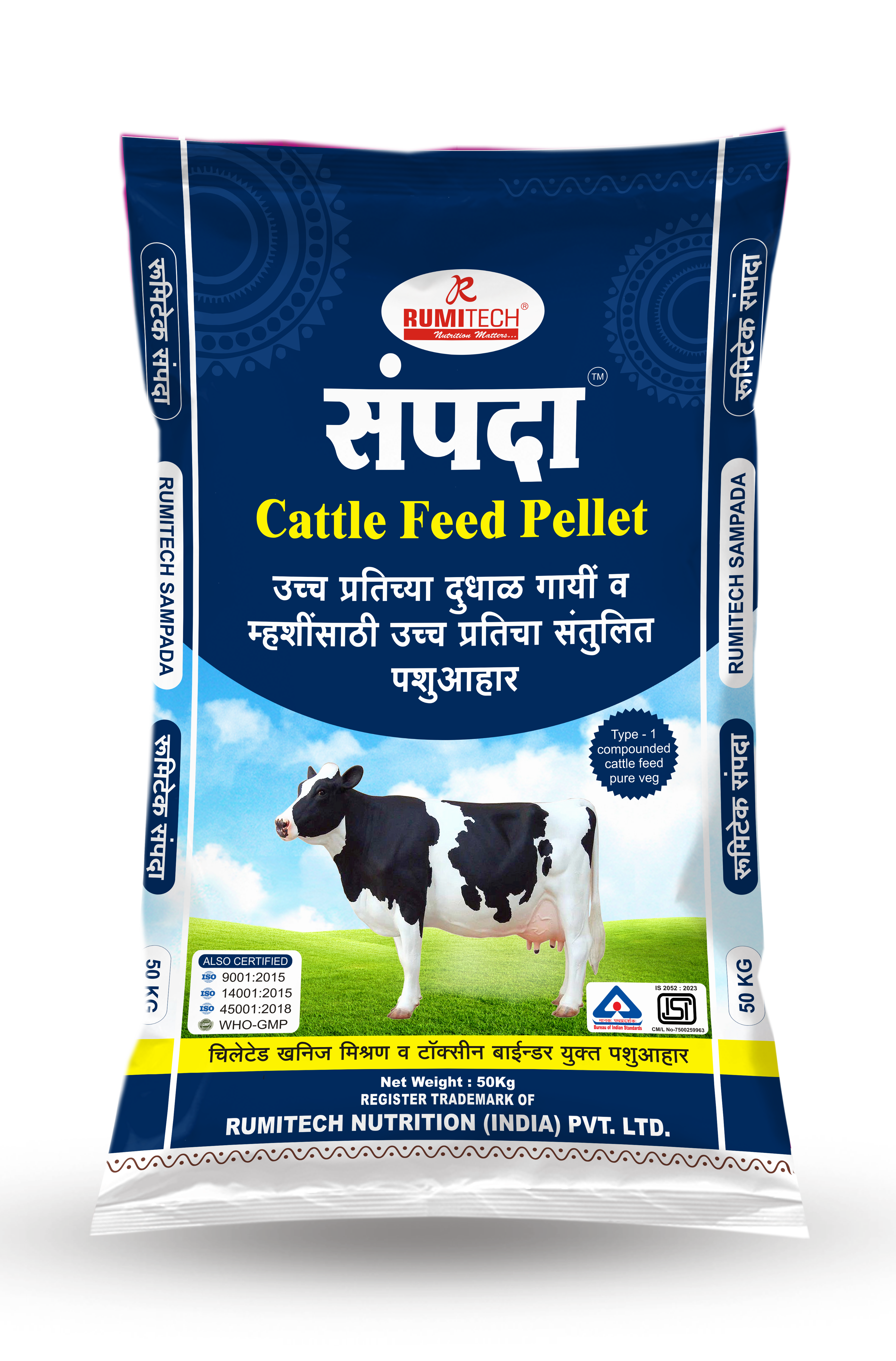 उच्च दर्जाच्या व जास्तीतजास्त दूध देणाऱ्या व अधिक दूध उत्पादक क्षमता असलेल्या गायींसाठी व म्हशींसाठी बायपास फॅट व टॉक्सिन बाईंडर व बायपास प्रोटीन युक्त पशुआहार अधिक उत्पादनासाठी लागणारी ऊर्जा प्रथिने व क्षार मिश्रण यांचा पुरवठा या पशुआहारातून केला जातो. संपदा हा पशुआहार गायी आणि म्हशींसाठी अत्यंत उपयुक्त आहे.