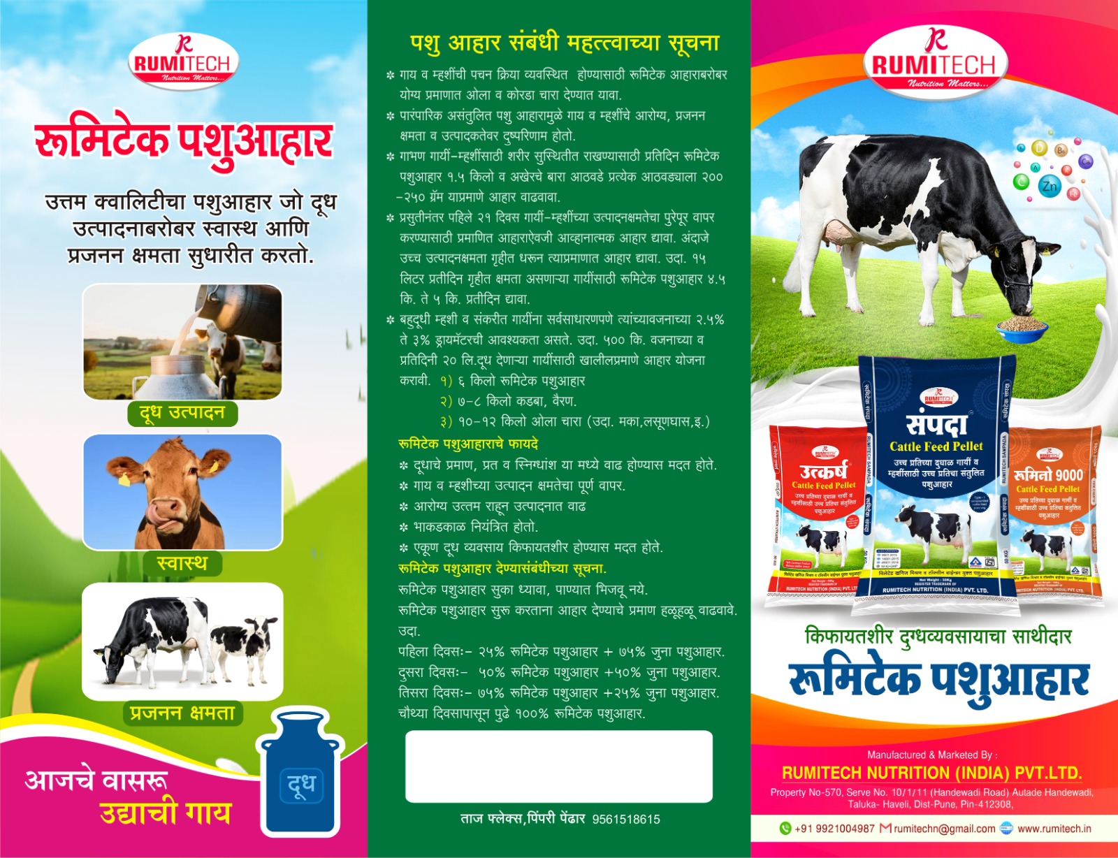 २५-३0 लि. प्रतिदिन दूध देणाऱ्या गायींसाठी उपयुक्त आहार. जनावरांची उत्पादन क्षमता वाढते. प्रति लिटर दूध उत्पादनांवर येणारा पशुआहाराचा खर्च कमी करण्यास मदत होते बायपास प्रोटीन,बायपास फॅट व खनिज द्रव्याचे योग्य मिश्रण असलेला पशुआहार.