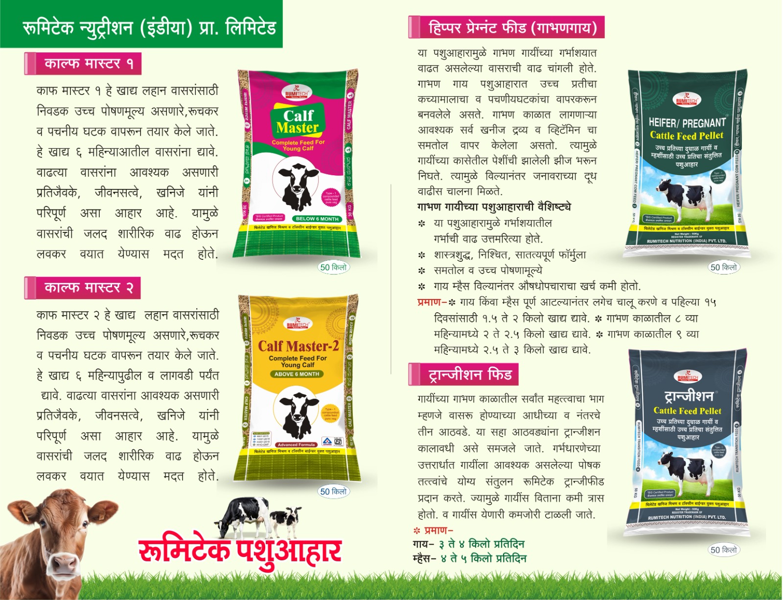 गायीच्या गाभण काळातील सर्वात महत्वाचा भाग म्हणजे वासरू होण्याच्या आधीच्या व नंतरचे ३ आठवडे या सहा आठवड्यांना ट्रान्जिशन कालावधी असे समजले जाते.गर्भधारणेच्या उत्तरार्धात गायीला आवश्यक असलेल्या पोषक तत्वांचे योग्य संतुलन रुमीटेक ट्रान्जिफीड प्रदान करते.ज्यामुळे गायीस विताना कमी त्रास होतो.व गायीस येणारी कमजोरी टाळली जाते.